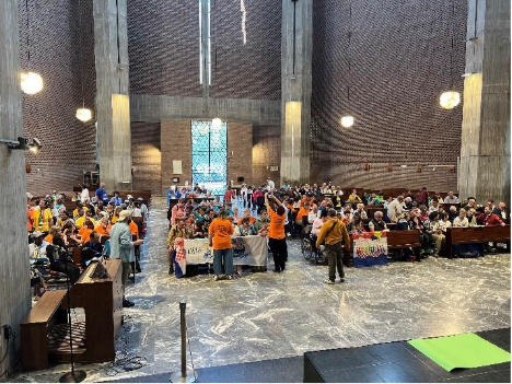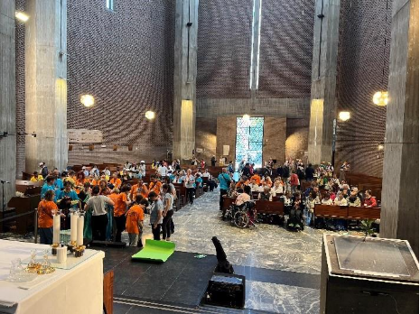 L’après-midi, nous nous sommes rendus à la basilique Saint-Paul-hors-les-Murs où une Sainte Messe a été célébrée, l’Évangile étant mimé par les amis de Foi et Lumière de Rome. Là, nous avons commencé à nous rendre compte de l’ampleur de la participation à ce grand événement, en rencontrant de nombreux anciens et nouveaux amis de Foi et Lumière venus du monde entier ainsi que de nombreux autres mouvements de personnes en situation de handicap. Inutile de dire que cette grande basilique romaine était pleine à craquer.