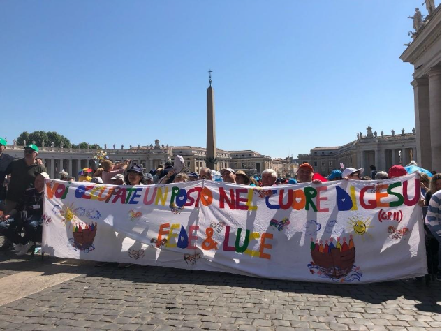 Le mardi 29 avril, par une belle journée de printemps, nous avons pu assister, sur la place Saint-Pierre, à une catéchèse de Mgr Rino Fisichella (un des principaux organisateurs du Jubilé) et entendre des témoignages émouvants de diverses organisations liées au handicap. Le témoignage d’un groupe de jeunes d’une paroisse romaine dans laquelle l’esprit de Foi et Lumière est pleinement vécu, bien que sous un autre nom, a été particulièrement significatif pour moi.
