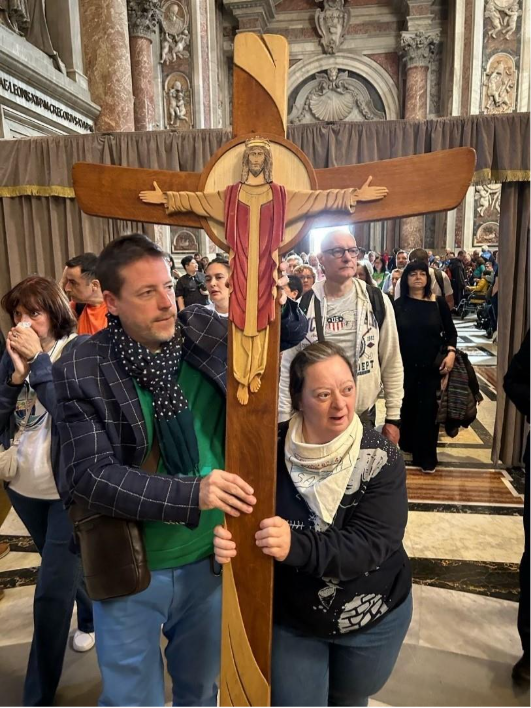 La première grande rencontre a eu lieu à Saint-Pierre le lundi 28 avril. Les pèlerins de Foi et Lumière déjà arrivés à Rome ont pu participer au pèlerinage à la Porte Sainte, en la franchissant et en pouvant porter la Croix en procession pendant quelques instants.